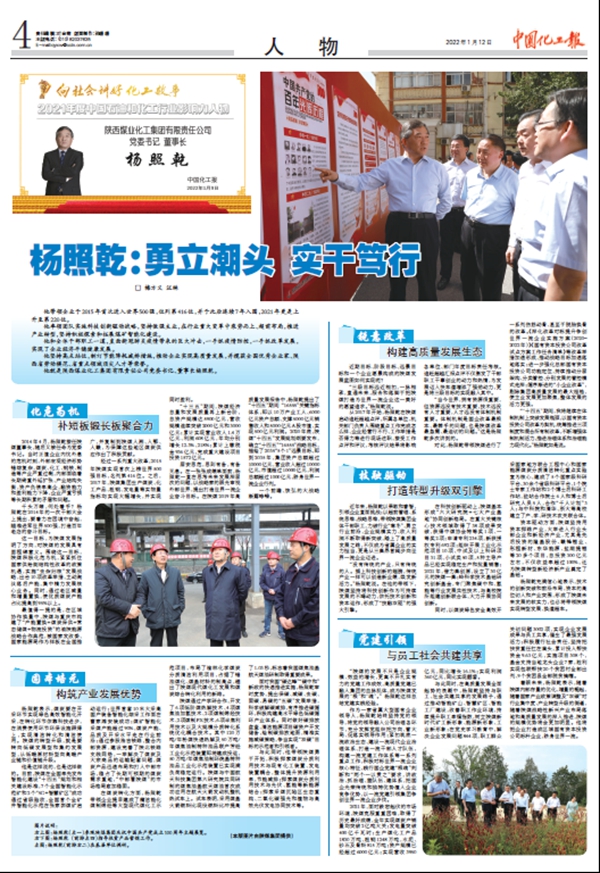 他就是陜西煤業(yè)化工集團(tuán)有限責(zé)任公司黨委書記、董事長楊照乾。