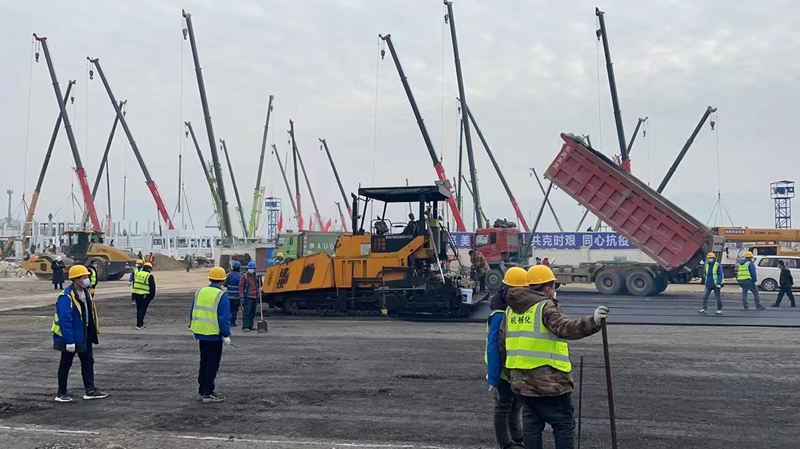2021年12月29日上午,我公司接到陜建華山路橋的緊急通知,參建西安市高新區(qū)方艙醫(yī)院項目,在疫情蔓延形勢復(fù)雜嚴(yán)峻的情況下,防控工作刻不容緩,我公司立即將參建放艙醫(yī)院作為一項特殊時期重要、緊急、光榮的任務(wù),高度重視、迅速響應(yīng)。各部門職工紛紛主動請纓,積極投身方倉醫(yī)院建設(shè)。由于疫情影響,面對原材料短缺、勞務(wù)人員短缺,我們克服了重重困難,迅速集結(jié)了30余名管理人員組成施工突擊隊,第一時間奔赴現(xiàn)場。當(dāng)天下午4點(diǎn),組織包括兩臺ABG8620瀝青攤鋪機(jī)、同步碎石封層車、雙鋼輪壓路機(jī)、膠輪壓路機(jī)、及小型前鋼后膠壓路機(jī)等機(jī)械設(shè)備已進(jìn)入工地現(xiàn)場。同時前場技術(shù)員、施工員、安全員、后勤員、運(yùn)輸隊均已進(jìn)入各自工作崗位。12月29日起,連夜生產(chǎn)8000余噸二灰碎石混合料,道路面層采用瀝青混合料進(jìn)行鋪設(shè),生產(chǎn)成品瀝青混合料5000余噸,經(jīng)過全體人員不分晝夜,緊張有序的連續(xù)施工,高新區(qū)放艙醫(yī)院項目順利完成。