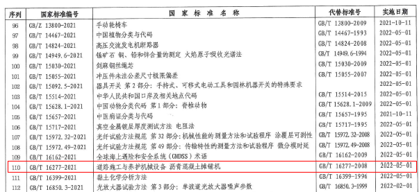 2021年10月11日,國家市場監(jiān)督管理總局和國家標(biāo)準(zhǔn)化管理委員會發(fā)布了中華人民共和國國家標(biāo)準(zhǔn),陜建機股份公司主編修訂的《道路施工與養(yǎng)護(hù)機械設(shè)備瀝青混凝土攤鋪機》國家標(biāo)準(zhǔn)批準(zhǔn)發(fā)布,2022年5月1日起在全國范圍內(nèi)實施。