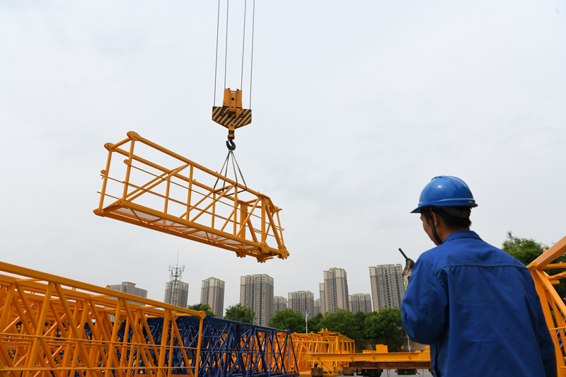完成噴涂的塔式起重機(jī)部件源源不斷地從自動(dòng)化粉末涂裝生產(chǎn)線下線。