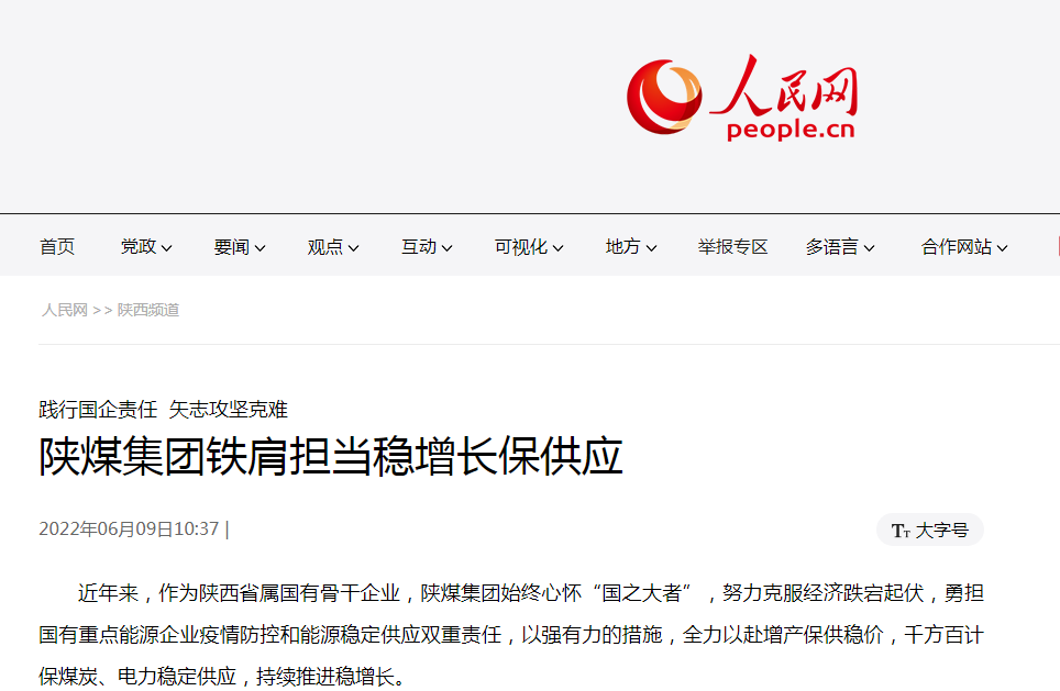 今年,面對疫情反復(fù)侵擾,疫情防控形勢嚴(yán)峻,能源穩(wěn)定供應(yīng)經(jīng)受嚴(yán)峻考驗。陜煤集團按照陜西省委、省政府安排部署,堅決扛起責(zé)任,把穩(wěn)產(chǎn)保供作為首要任務(wù)來抓,保障能源供應(yīng)穩(wěn)定安全。