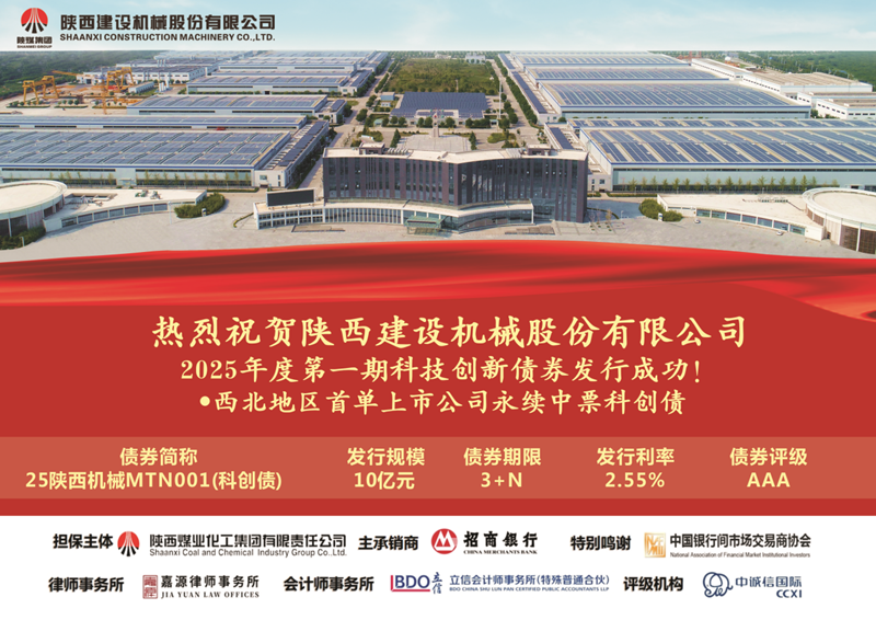 6月26日,陜西建設機械股份有限公司(以下簡稱“建設機械”)成功發(fā)行2025年度第一期科技創(chuàng)新債券,發(fā)行規(guī)模10億元,票面利率2.55%,發(fā)行期限3+N年,債項評級AAA。 本次中期票據(jù)簡稱“25陜西機械MTN001(科創(chuàng)債)”,由陜煤集團提供連帶責任保證擔保,招商銀行擔任獨家承銷商。建設機械充分借助中國銀行間市場交易商協(xié)會大力推廣債券市場“科創(chuàng)板”的有利政策,成功發(fā)行西北首單上市公司科技創(chuàng)新債券,也是陜西省屬企業(yè)首次發(fā)行次級永續(xù)中期票據(jù)。作為陜煤集團裝備制造板塊核心企業(yè),建設機械自2004年在上海證券交易所掛牌上市(股票代碼:...