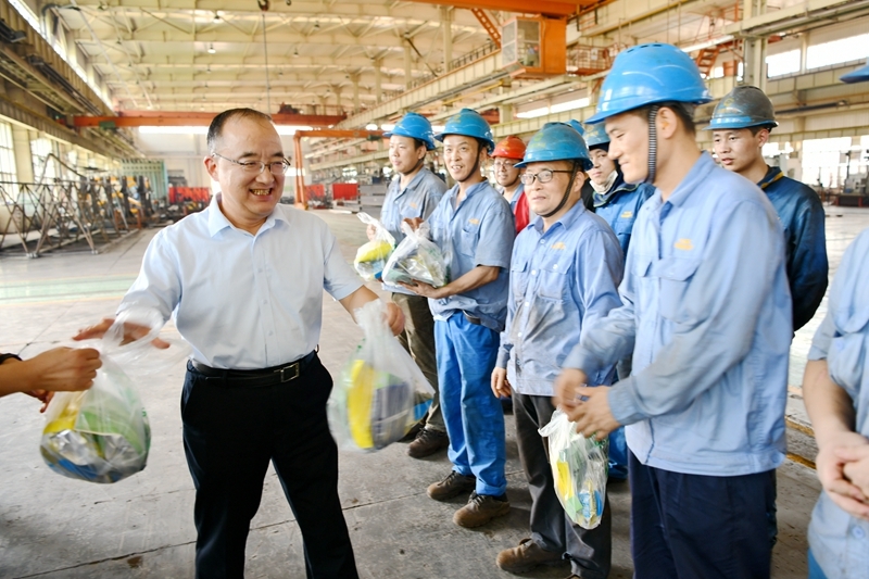 盛夏時(shí)節(jié),烈日炎炎。為進(jìn)一步推動(dòng)主題教育走深走實(shí),扎實(shí)開展“我為群眾辦實(shí)事”實(shí)踐活動(dòng),做好高溫天氣職工群眾安全健康權(quán)益,陜建機(jī)股份領(lǐng)導(dǎo)班子成員走進(jìn)基層,開展盛夏“送清涼”活動(dòng)。8月1日下午,該公司黨委書記、董事長楊宏軍等領(lǐng)導(dǎo)班子成員到鉚焊車間生產(chǎn)現(xiàn)場(chǎng),把清涼物品送到了一線職工們手中。楊宏軍與職工們親切交流,關(guān)心他們身體健康,了解他們生產(chǎn)生活情況,參觀了鉚焊車間為職工配置的包含冷飲機(jī)和冰淇淋機(jī)的“清涼角”,品嘗了職工制作的冰淇淋,對(duì)鉚焊車間的做法給予充分肯定,同時(shí)叮囑大家越是在高溫天氣,越要增強(qiáng)安全意識(shí),...
