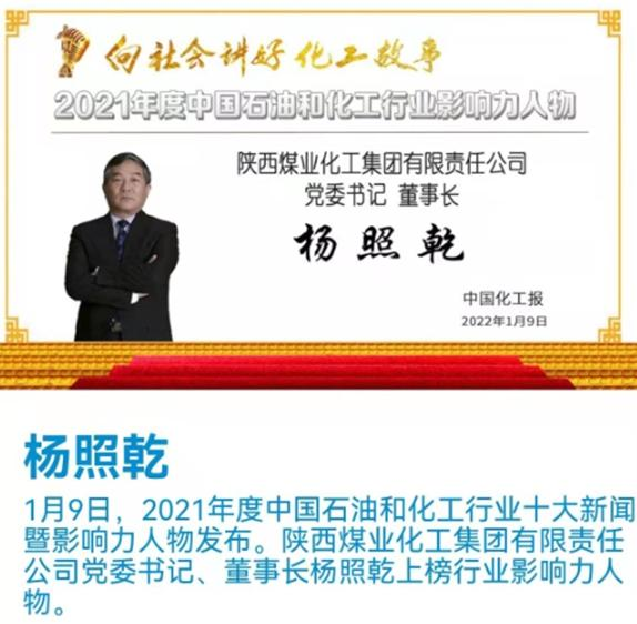 2022年1月9日,由中國石油和化學工業(yè)聯(lián)合會指導,《中國化工報》社有限公司主辦的“2021年度石油和化工行業(yè)十大新聞暨影響力人物發(fā)布盛典”采用線上直播的形式舉行。陜煤集團黨委書記、董事長楊照乾榮膺“2021年度中國石油和化工行業(yè)影響力人物”。發(fā)布盛典上,同時發(fā)布了《2021年度石油和化工行業(yè)責任關懷輿情報告》和2021年度中國石油和化工行業(yè)企業(yè)公民楷模榜,北元集團和東鑫垣公司等50家企業(yè)上榜。2021年以來,楊照乾以超前管理、系統(tǒng)思維、戰(zhàn)略思維,帶領全體干部職工勇立行業(yè)前沿,以國有資本投資公司改革為契機,統(tǒng)籌推進三項制度和混...